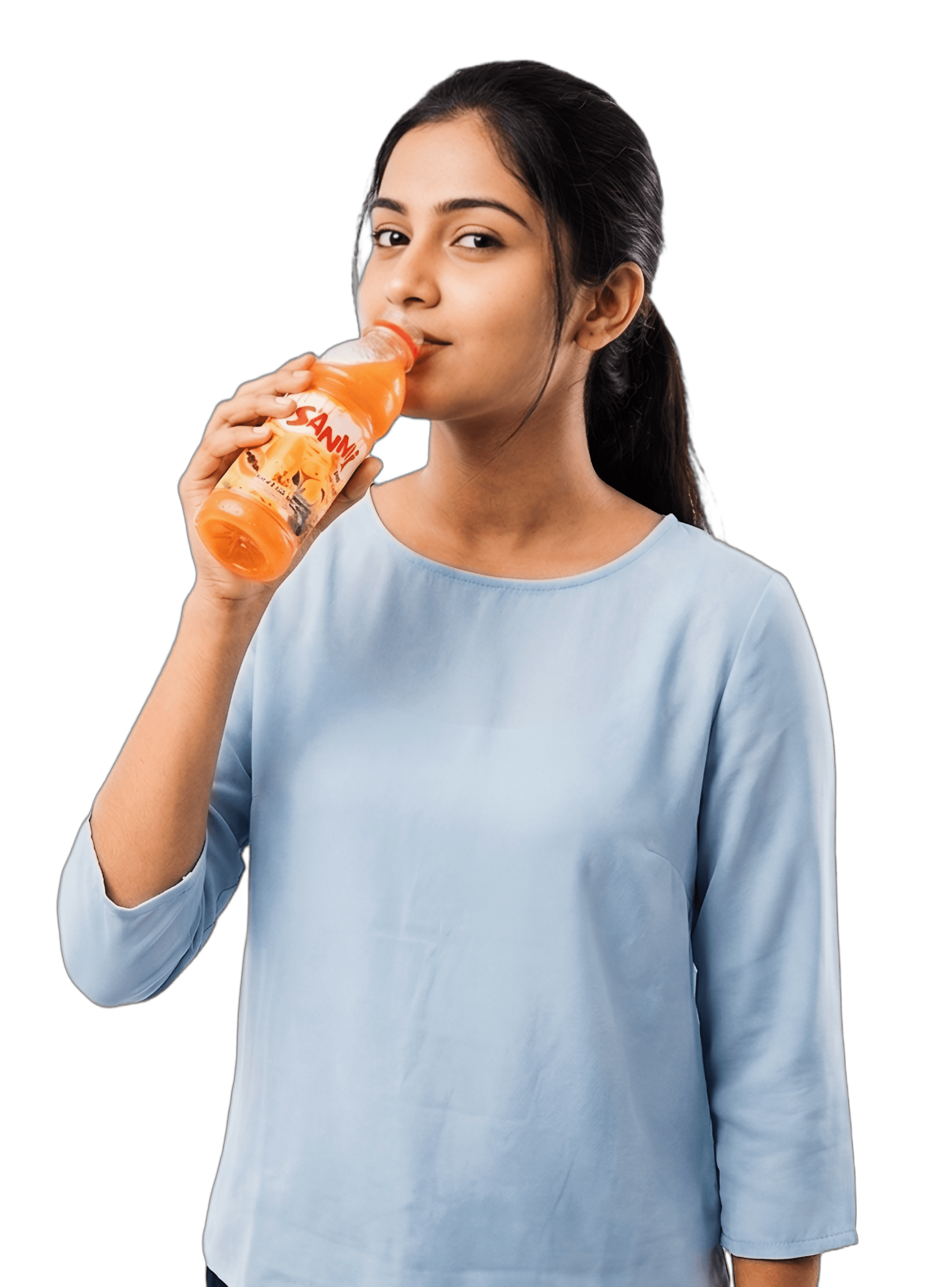 Fruit pieces in bottle—premium texture and real fruit you can see.